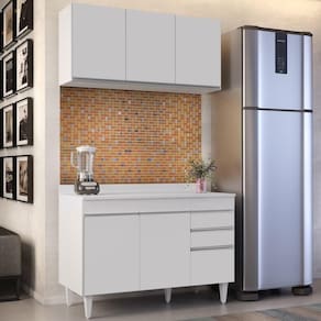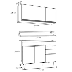 Conteúdo da Embalagem: 1 Armário Aéreo, 1 Balcão, 1 Tampo.