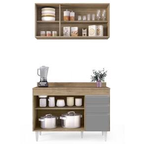 Confira o Armário aéreo Virgínia e Balcão para pia com Tampo Michigan 120cm Castanho/Cinza imperdível que a Lumil preparou e tenha a cozinha moderna que sempre quis!!