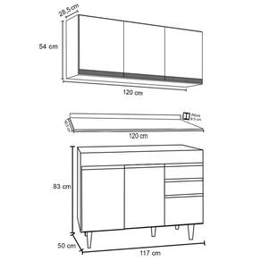 Conteúdo da Embalagem: 1 Armário Aéreo, 1 Balcão, 1 Tampo.