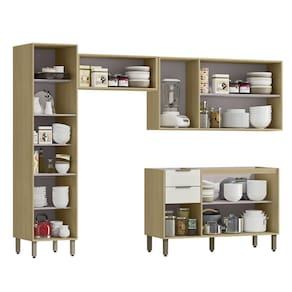 Materiais: Estrutura 100% MDP (chapa de 15mm), Dobradiças Metálicas, Corrediças Telescópicas, Pistão a Gás, Pés de Regulagem e Puxadores em ABS.