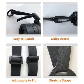 - As tiras de fibra acrílica são duráveis e permitem deslizar facilmente os binóculos para a posição de visualização. O arnês de tamanho único é fácil de fixar e completamente ajustável.
