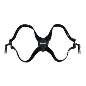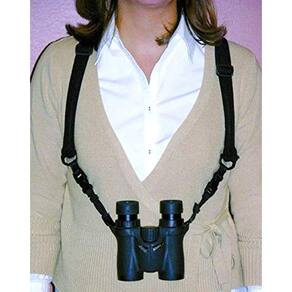 - Para binóculos maiores, este arnês dispersa o peso pela parte superior das costas e ombros, tirando a carga do pescoço