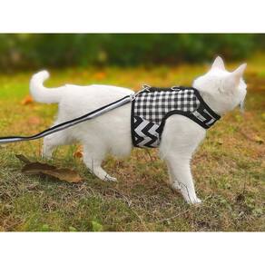 Arnês e coleira para gatos YIZHI MIAOW, manta preta ajustável XXL