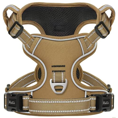 HEELE Dog Harness for Small Medium Large Dogs with Soft Handle HEELE Dog Harness is stylish, safety, and durable. HEELE Dog Vest Harness do the best to prevent the dog injuries than a collar. From a training perspective, this harnesses are useful for teaching your dog not to pull as the pressure from a harness is more evenly distributed around your dog's body. Reflective Nylon webbing ensure good visibility for this high-end Dog Harness.Compare to other harnesses to see the Difference in our Quality and Appearance. Please refer to the size chart image for correct item dimensions before you buy. Features: 1. The harness is specially built to distribute pressure evenly and safely around your dogs' chest rather than sensitive neck, thus preventing choking. The thoughtfully designed construction would not rub your dog's sensitive skin. 2. 2 metal clips and 1 sturdy handle make your dog a happy dog! Front Clip: Give you more control on your dog's trajectory to let it learn to heel and lessen their desire to pull. Let your dog actively focus on you during walk, which is very important for training. Chest Clip: Give your dog a comfortable control. Suitable for casual walking. Handy Sturdy H?ndl?: With a sturdy handle on the back,you can control your dog directly by your hands. H?l? ??u to m?n?g? d?ff??ult situations ?u?h ?? wh?n ??u ?r? b?th?r?d b? ?n?th?r d?g ?r if ??u ?r? guiding your dog into a car. 3. Easy to Wear: Fully adjustable at neck & chest with 4 adjusters. No need to adjust it too often once customized a snug and nice fit for your dog. Just slip it over the head, connect the quick release fasteners and off you go. - Fácil de colocar e tirar – um peitoral para cães com cinto peitoral ajustável e 2 fivelas de liberação rápida para garantir HEELE segurança do seu cão e criar um ajuste personalizado para o seu cão. Tamanho GG: pescoço 58-89 cm (23-35 pol.), peito 53-97 cm (21-38 in). - Design sem puxar e não estrangular: sem desconforto no pescoço do cão, a pressão de tração é distribuída uniformemente ao corpo para evitar puxar e asfixiar. Com 2 anéis de coleira de metal para passeios com cães mais seguros. Use o anel no peito para impedir que seu cão puxe para passear e o anel traseiro é ótimo para passeios casuais, etc. - Fácil de ajustar: com 4 alças fortes e ajustáveis ao redor do corpo. Você pode usar 2 tiras de pescoço e 2 tiras no peito para oferecer um ajuste ideal com espaço extra de crescimento. Não se preocupe em escorregar ou engasgar. - Durável e confortável – Feito de oxford de nylon durável e acolchoado com almofada macia para proteger a pele do seu cão. O forro de malha leve respirável e confortável mantém seu cão fresco durante atividades ao ar livre. Acolchoamento de esponja macia no peito e na barriga, oferecendo conforto e proteção extra. - Controle seguro e perfeito – Tiras refletivas super brilhantes garantem uma caminhada segura no escuro e à noite. Uma alça resistente acolchoada de neoprene macio na parte traseira para ajudar você a pegar e controlar seus cães em uma emergência, também ajuda a entrar no carro ou degraus. Meça seu cão para obter o tamanho certo antes de comprar. Para obter mais detalhes, leia a descrição do produto abaixo.