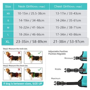 HEELE Dog Harness for Small Medium Large Dogs with Soft Handle HEELE Dog Harness is stylish, safety, and durable. HEELE Dog Vest Harness do the best to prevent the dog injuries than a collar. From a training perspective, this harnesses are useful for teaching your dog not to pull as the pressure from a harness is more evenly distributed around your dog's body. Reflective Nylon webbing ensure good visibility for this high-end Dog Harness.Compare to other harnesses to see the Difference in our Quality and Appearance. Please refer to the size chart image for correct item dimensions before you buy. Features: 1. The harness is specially built to distribute pressure evenly and safely around your dogs' chest rather than sensitive neck, thus preventing choking. The thoughtfully designed construction would not rub your dog's sensitive skin. 2. 2 metal clips and 1 sturdy handle make your dog a happy dog! Front Clip: Give you more control on your dog's trajectory to let it learn to heel and lessen their desire to pull. Let your dog actively focus on you during walk, which is very important for training. Chest Clip: Give your dog a comfortable control. Suitable for casual walking. Handy Sturdy H?ndl?: With a sturdy handle on the back,you can control your dog directly by your hands. H?l? ??u to m?n?g? d?ff??ult situations ?u?h ?? wh?n ??u ?r? b?th?r?d b? ?n?th?r d?g ?r if ??u ?r? guiding your dog into a car. 3. Easy to Wear: Fully adjustable at neck & chest with 4 adjusters. No need to adjust it too often once customized a snug and nice fit for your dog. Just slip it over the head, connect the quick release fasteners and off you go. - Fácil de colocar e tirar – um peitoral para cães com cinto peitoral ajustável e 2 fivelas de liberação rápida para garantir HEELE segurança do seu cão e criar um ajuste personalizado para o seu cão. Tamanho GG: pescoço 58-89 cm (23-35 pol.), peito 53-97 cm (21-38 in). - Design sem puxar e não estrangular: sem desconforto no pescoço do cão, a pressão de tração é distribuída uniformemente ao corpo para evitar puxar e asfixiar. Com 2 anéis de coleira de metal para passeios com cães mais seguros. Use o anel no peito para impedir que seu cão puxe para passear e o anel traseiro é ótimo para passeios casuais, etc. - Fácil de ajustar: com 4 alças fortes e ajustáveis ao redor do corpo. Você pode usar 2 tiras de pescoço e 2 tiras no peito para oferecer um ajuste ideal com espaço extra de crescimento. Não se preocupe em escorregar ou engasgar. - Durável e confortável – Feito de oxford de nylon durável e acolchoado com almofada macia para proteger a pele do seu cão. O forro de malha leve respirável e confortável mantém seu cão fresco durante atividades ao ar livre. Acolchoamento de esponja macia no peito e na barriga, oferecendo conforto e proteção extra. - Controle seguro e perfeito – Tiras refletivas super brilhantes garantem uma caminhada segura no escuro e à noite. Uma alça resistente acolchoada de neoprene macio na parte traseira para ajudar você a pegar e controlar seus cães em uma emergência, também ajuda a entrar no carro ou degraus. Meça seu cão para obter o tamanho certo antes de comprar. Para obter mais detalhes, leia a descrição do produto abaixo.