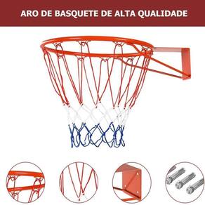 Aro de basquete bonafitproduto de qualidade premium excelente acabamento fabricado em aço carbono tudo que você precisa para praticar seu esporte favorito com qualidade e segurança.Principais características:- fácil de instalar. Compatível com padrão de parafuso de montagem de 5x5in, 5x4.5in, 5x4in, 5x3.5in, 5x3in, 4x3in.- de aro de basquete de 18 feito de aço sólido de 5/8 com braçadeiras de aço de 1/2, acabamento revestido em pó.- adapta-se à maioria dos blackboard padrão. Aro de separação de aço sólido com mecanismo flexível de ação de mola.Especificações técnicas: - cor do aro: vermelho- nível: intermediário- cor do nylon: azul branco e vermelho- material: aço e nylon aro em aço carbono 3/4, medindo 45cm de diâmetro; rede de seda, modelo profissional - tamanho do aro: 45cm- peso do pacote 6,42 kg- dimensões do pacote :24,5 x 19,36 x 6,9 polegadas - : 3 meses Imagens meramente ilustrativaso pacote inclui: 1 aro de basquete com a rede.Altura indicada para fixar o aro é de 3,05 metros, podendo alterar de acordo com sua necessidade