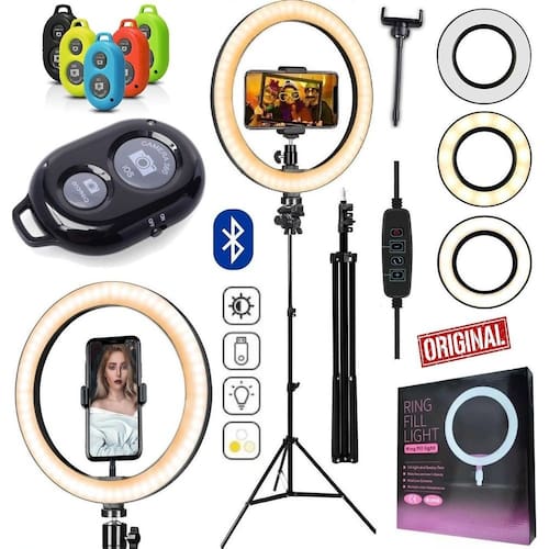 kit iluminador ring light + tripé 2,10m + controle bluetooth
