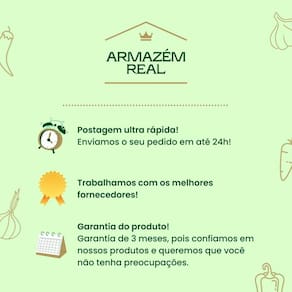 Com mais de 25 anos no ramo alimentício, a equipe Armazém Real garante confiança e satisfação em seus produtos. Temos um controle de qualidade excelente, produzindo a maioria dos nossos produtos internamente. Além disso, nossos produtos possuem garantia de 3 meses, garantindo assim a qualidade e desempenho.
