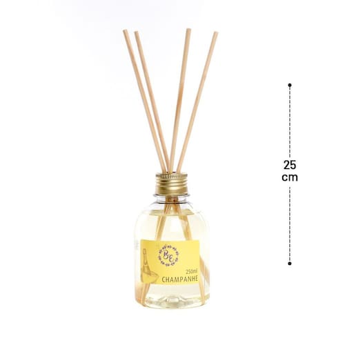 Aromatizador de Ambiente 250ml Champanhe Aromatizador de ambiente 250ml Champanhe. Contém fragrância de Champanhe. Possui 250ml e acompanha 4 varetas de madeira reflorestada. Entregamos para todo Brasil! Confira e se surpreenda!\nMarca : ALOP Tipo de material : Água aromatizada Cores ou Estampa : Amarelo Dimensões do Produto : 25 X 6,5 X 6,5 CM Dimensões da Embalagem : 25 X 6 X 6 CM Peso Bruto (Gramas) : 0.252 Marca: Não Informado