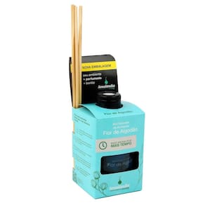 Aromatizador de Ambiente 280ml Flor de Algod� Aromatizador de ambiente 280ml Flor de Algodão. Contém fragrância de Flor de Algodão. Possui 280ml e acompanha 5 varetas de madeira reflorestada.\nMarca : SENALANDIA Tipo de material : Essência, álcool de cereais Cores ou Estampa : Azul Dimensões do Produto : 22 X 6,5 X 6,5 CM Peso Bruto (Gramas) : 0.270