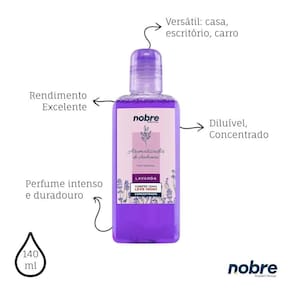 O Aromatizante de Ambiente Lavanda Concentrado Nobre é ideal para perfumar espaços internos com praticidade e perfume duradouro. Sua fórmula concentrada garante alta concentração de fragrância, proporcionando sensação de frescor e bem-estar por mais tempo. Com borrifador, o produto facilita a aplicação e rende mais, pois poucas borrifadas já perfumam o ambiente. Indicado para uso em salas, quartos, banheiros, escritórios, lojas e outros ambientes internos. A marca Nobre oferece um aromatizante pensado para quem valoriza ambientes cheirosos e acolhedores ao longo do dia.