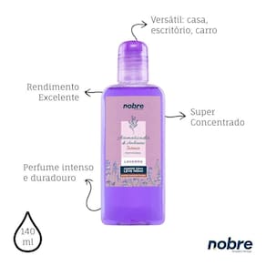 O Aromatizante de Ambiente Nobre Lavanda 140ml é indicado para perfumar ambientes internos com praticidade e perfume duradouro. Sua fórmula líquida concentrada proporciona fragrância intensa com poucas borrifadas, garantindo melhor aproveitamento do produto. Com alta concentração de fragrância e borrifador, ajuda a manter a sensação de frescor, limpeza e bem-estar por mais tempo. Pode ser utilizado em casa, escritório, comércio e outros ambientes internos diversos. A marca oferece garantia de 3 meses, reforçando a confiabilidade do produto.