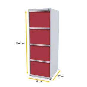 Muitos documentos para organizar? Nossa sugestão: invista em peças modernas e de qualidade, como este arquivo de aço da Pandin. Sua estação de trabalho vai ficar mais bonita e você vai ganhar tempo com este arquivo de aço com quatro gavetas, nas cores cinza e vermelho. A decoração de sua sala de trabalho pede outra cor? Nós temos! Este modelo vem em diversas opções de cores, que podem compor escritórios dos mais sóbrios aos mais criativos. Organize sua papelada, suas pastas, materiais de trabalho e documentos em geral com esse arquivo, um dos mais vendidos por nós. Leve este arquivo para seu home-office ou sua empresa e facilite suas ações diárias! Esta é mais uma peça da linha Aço da Pandin, que oferece móveis práticos, duráveis, muito resistentes e de excelente custo-benefício. Você pode combinar este arquivo com outros móveis da linha, como nossos armários, estantes e roupeiros de aço e criar um ambiente sob medida, personalizado de acordo com suas necessidades.