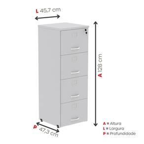 Suas 4 gavetas espaçosas oferecem excelente capacidade para armazenar e organizar documentos, pastas e materiais de uso frequente, mantendo tudo sempre acessível e bem distribuído. O design funcional proporciona facilidade de uso, enquanto a robustez do móvel assegura longa vida útil mesmo em rotinas intensas.