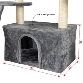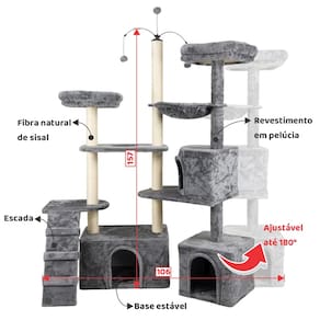 Desenhado por pessoas apaixonadas por gatos, esse luxuoso arranhador é composto por: Três casas grandes, duas camas espaçosas com borda macia, cesto, três poleiros, escada e brinquedo giratório.
