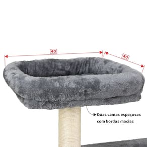 O arranhador é revestido em pelúcia para dar mais conforto aos pets e algumas colunas são revestidas em fibra natural de sisal.