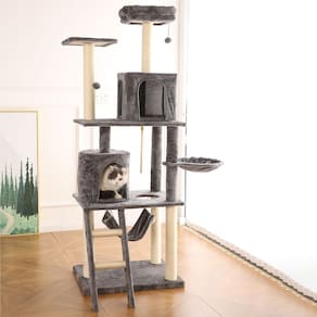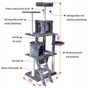Descrição do produto: Desenhado por pessoas que conhecem de gatos, esse luxuoso arranhador oferece vários cômodos super confortáveis para os seus gatinhos repousarem, entre eles: Casas, cama, rede, cesto e poleiros.