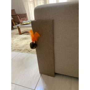 Arranhador gato cama box protetor canto com bolinha Os arranhadores protegem os sofás, cama box e também contribuem muito com a saúde e diminuição do dos bichanos, esticando e estimulando músculos e tendões. Nossos arranhadores são produzidos com materiais da mais alta qualidade e com muito carinho pensando no seu conforto e diversão dos seus gatinhos. Com mdf de 6 mm, carpete resistente, travamento e testes de resistência, para oferecer segurança e mais durabilidade aos nossos produtos. A base do arranhador é feito de mdf de 6 mm e não prejudica a altura do seu sofá. A base é reforçada com travamento pra não desprender no momento em que seu gatinho estiver brincando Obs reservamos o direito de colocar as bolinhas nas cores disponíveis no momento da montagem, não cabendo ao cliente escolher as cores das bolinhas bem como as cores das penas de galinhas. Descrição Arranhador de gato para sofá e cama box O valor cobrado é referente a duas unidades Medidas Laterais 18 cm Altura 56 cm Material carpete de alta qualidade resinado e agulhado Cor: bege incluso no kit 2 unidades Marca: Não Informado