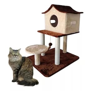 Marca: American Pets Cor: Marrom e bege Modelo: Arranhador Para Gatos Com Casa 70940 Material: Pelucia, Sisal e Madeira