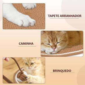 Com 4 fios de corda de algodão trançados com acabamento em tecido lavável, esse tapete é super resistente e ideal para o seu gatinho rasquear e descansar. Funciona também como um arranhador natural!