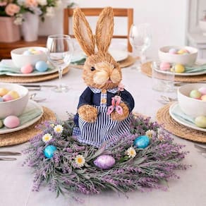 Arranjo Centro De Mesa Decoração Coelha Ovos Páscoa De 30cm Arranjo Centro De Mesa Decoração Coelha Ovos Páscoa De 30cm - Deixe sua Páscoa ainda mais charmosa com este lindo arranjo decorativo de coelha. Ideal para centro de mesa, aparador, balcão ou prateleira, ele traz um toque delicado e acolhedor para a decoração pascal, combinando perfeitamente com ambientes clássicos ou modernos Características: Tema: Páscoa Modelo: Arranjo com Coelha e Ovos Uso: Centro de mesa / Decoração Medidas: Altura 30cm x Diâmetro 25cm Conteúdo da embalagem: 1 Arranjo Centro de Mesa Decorativo de Páscoa