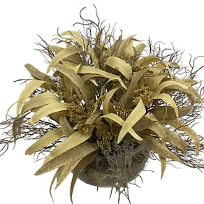 Arranjo permanente de Flores Secas em efeito hiper-realista com vaso incolor de vidro.