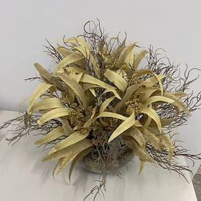 Arranjo Grande Centro de Mesa Flores Secas Artificial Vaso Incolor
