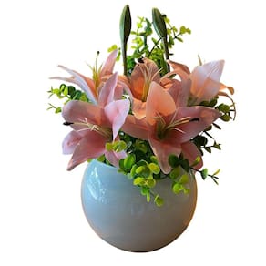 Arranjo permanente de Lírio em efeito hiper-realista com vaso branco.