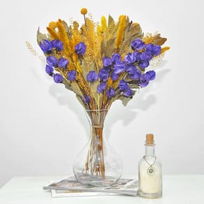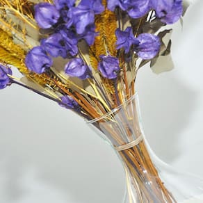 Todos os nossos arranjos e buquês são criados com flores naturais desidratadas artesanalmente. Por ser um processo manual, isso garante que cada arranjo seja único em sua composição.