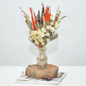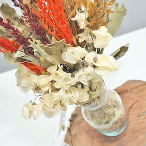 Todos os nossos arranjos e buquês são criados com flores naturais desidratadas artesanalmente. Por ser um processo manual, isso garante que cada arranjo seja único em sua composição.