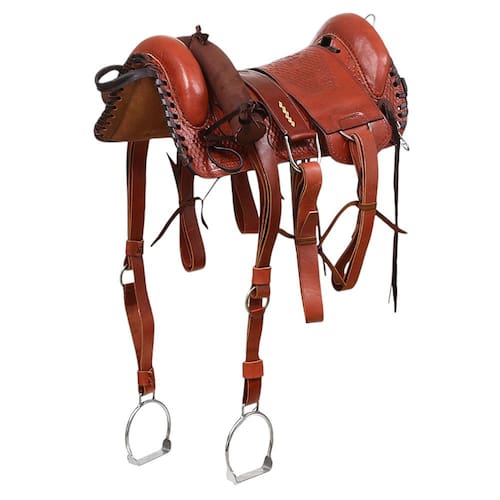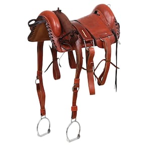 Arreio da marca A Pantaneira modelo Banana Especial, utilizado em Muares e Cavalos, fabricado em couro de alta qualidade, tentos em couro, costuras reforçadas e trançados em couro em volta da peça, Argolas em aço Inox, área do assento com tamanho livre de 17". Travessão removível em couro com costuras reforçadas, alça na parte frontal e suador com enchimento em feno revesido em couro e bordas em nylon costurado.