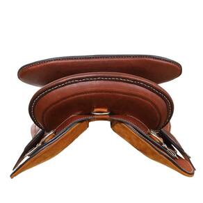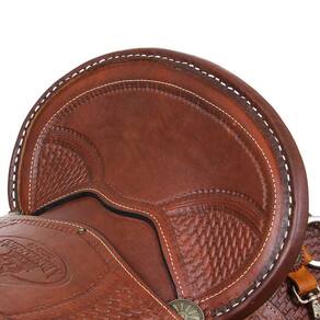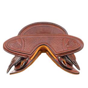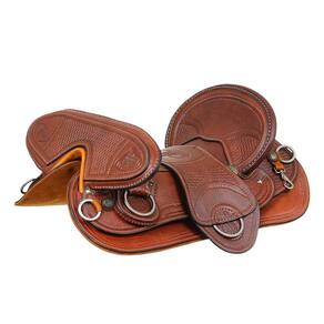 Arreio Cutuca da marca A Pantaneira, utilizado em Muares e Equinos, fabricado em couro de alta qualidade na cor Havana com detalhes em bordados e costuras reforçadas, também há rebites de metal e margaridas com banho envelhecido, assento em couro e travessão móvel com tamanho livre de 20", trabalhado com bordados, argolas em aço inox, armação de madeira inervada, suador com revestimento em couro.