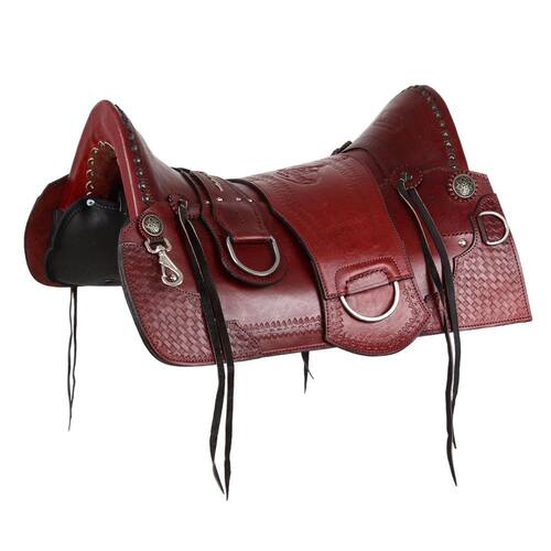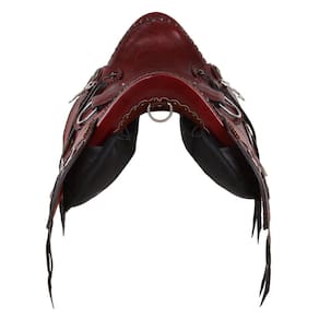 Arreio da marca A Pantaneira modelo Promissão, utilizado em Muares e Equinos, fabricado em couro de alta qualidade na cor Havana com costuras reforçadas, acabamento em rebites, tamanho livre do assento de 18", armação de madeira totalmente inervada e acabamento do suador com enchimento em feno, revestimento em couro e bordas em nylon costurado. Acompanha travessão presa e argolas em aço inox.