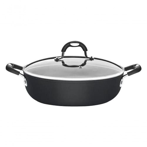 - Corpo de alumínio com espessura de 3,0 mm que proporciona cozimento rápido e uniforme.- Revestimento interno e externo de antiaderente Starflon Premium que não gruda, é fácil de limpar, mais durável e não é prejudicial a saúde.- Tampa de vidro temperado com borda de aço inox e saída de vapor.- Alças e pegadores metálicos com proteção de silicone que proporciona redução da propagação de calor, aumentando a e melhorando a empunhadura.- Podem ir à máquina de lavar louças facilitando seu dia a dia.- Imagem meramente ilustrativa. Ean: 7891112280007