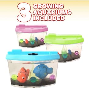 DIVERSÃO MÁGICA QUE CONTINUA CRESCENDO E CRESCENDO Expandindo A Emoção Comprando por aí para um deleite para aquele garoto? Em seguida, obter-lhes um que faíscas um maravilha-cheio 'Whoaaaa!'. Este crescente conjunto de aquários vai deixar os pequenos emocionados. Cada conjunto inclui mini aquários de 3 (3") que surgem com tons neon de azul, rosa e verde. Mas a aparência é apenas uma fração da diversão. Adicione água aos aquários e os peixes bonitos crescem até 5X seu tamanho em apenas 3 dias! Mantenha seu filho intrigado por horas a fio enquanto eles assistem seu aquário crescer. Ótimo para presentear Se você está procurando favores de festa para a festa de aniversário do seu pequeno, suprimentos de festa exclusivos, prêmios para o carnaval ou concurso infantil, presentes de sala de aula, ou apenas um presente legal para fazer o dia da sua torta fofa, esses aquários em crescimento são garantidos como um sucesso! Cada pacote não só vem com 3 aquários para dar o suficiente para empacotar, mas também uma garantia de 100% de de volta para lhe dar total tranquilidade. Inspire uma onda de sorrisos e risadas sem ter nada a perder. É por isso que você vai adorar esses aquários: