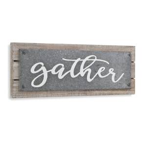 Arte de pared de metal Cheung sobre tabla de madera con texto impreso en epoxi - Cartel decorativo "Gather", color marrón. - Diseño completamente hecho y elaborado a mano. - Totalmente ensamblado y listo para usar, ¡solo desempaca y exhibe! - Esta pieza está hecha con una combinación complementaria de materiales de madera y metal. - Formado con un panel de metal galvanizado con letra impresa en epoxi. - Incluye aberturas traseras para montar la pieza en la pared.