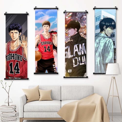 Material: tecido Tamanho: 25x75 cm Peso: 400 g Embalagem: 4 x Wall Art Scrolls Com personagens favoritos dos fãs do icônico anime Slam Dunk, essa arte de parede traz ação e energia à sua sala de estar. Inclui personagens populares como Hanamichi Sakuragi, Rukawa Kaede e Mitsui Hisashi. Esta arte de parede em tela de alta qualidade é o complemento perfeito para qualquer quarto, escritório ou sala de estar. As cores vibrantes e o design dinâmico capturam o espírito do Slam Dunk, tornando-o indispensável para amantes de anime e fãs de basquete. Feita com material de tecido durável, esta arte de parede mantém sua aparência vibrante ao longo do tempo. A impressão permanece nítida e colorida, mesmo em áreas de tráfego intenso, oferecendo um prazer visual duradouro por muitos anos. Ideal para uma variedade de ambientes, incluindo casa, dormitórios, salas de aula e escritórios. Esta obra de arte versátil motiva e inspira, tornando-a uma excelente escolha para qualquer fã de Slam Dunk ou de decoração com temas esportivos. Essa arte de parede também é um presente atencioso para fãs de anime. Seja para um aniversário, uma ocasião especial ou apenas como um presente para si mesmo, é uma maneira perfeita de mostrar seu amor por Slam Dunk e seus personagens icônicos.