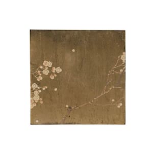 Conjunto de arte de parede Benjara Tim de 24 polegadas, design floral dividido, quadrado, dourado, marrom e cinza