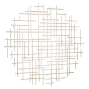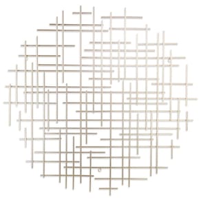 - A escultura de parede é composta por barras de metal cruzadas que adicionarão um elemento único e distinto ao seu espaço.