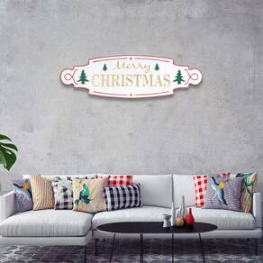- Apresenta um acabamento levemente rústico com cores brilhantes de Natal. Inclui duas aberturas traseiras em “O” para montagem na parede
