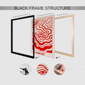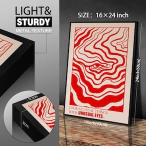- Citações de decoração de parede: O tamanho da decoração de parede dos anos 70 é de 40,6 x 61 cm. O pôster de olho é embrulhado e esticado em uma moldura de madeira e colocado em uma moldura de alumínio preta. A moldura preta também adiciona um pouco de modernidade e estilo ao pôster