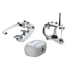 Características Articulador não padronizado, Com estojo Arco Facial SemiajustávelArcon Distância intercondilar fixa (110mm) Guia condílica curva Regulagem do ângulo da guía Condílica Regulagem do ângulo de Bennet Trava Central Com Arco Sistema estabilizador dos movimentos com junção de silicone.