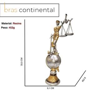 Descrição: Estátua Themis, deusa da justiça, acompanhada de uma pequena balança. Características: Fabricado em resina. Pintura altamente resistente com excelente acabamento. Por se tratar de um produto semi-artesanal, pode haver leve alteração na tonalidade. Cor dourada com sinais de oxidação (pintura). Medidas: Altura: 33,5 cm Largura: 9,1 cm Comprimento: 8 cm Peso: 452 g Observação: As imagens contidas neste anúncio são fotos reais do produto. Marca: Não Informado
