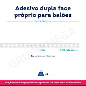 Rolo de fita dupla face com 300 gotas pontos próprio para colar balões de festas Faça da sua festa de aniversário um verdadeiro espetáculo Com nossos artigos de festas, você poderá criar decorações incríveis, cheias de cores e alegria. As crianças vão se encantar com a magia que os balões trazem para a festa Características: Super fácil de usar Ideal para colar um balão no outro Pode ser Utilizado para colar balões em paredes ou outras superfícies Super fácil de retirar da parede Permite você criar arranjos e decorações personalizadas incríveis e em pouco tempo Compatível com diferentes tamanhos de bexigas Compatível com balões laminados, bubbles e balões de látex Especificações técnicas: Marca: GH3 Modelo: Fita dupla face para balões Quantidade: 3 rolos Quantidade de adesivos por rolo: 100 Cor: Transparente Circunferência de cada adesivo: 1cm Como usar fita gota dupla face para colar balões: Corte uma ponta de adesivo ainda com o papel Cole-a na superfície do balão Retire o papel protetor Cole o balão onde desejar Transforme sua festa em um evento inesquecível com nossos artigos especiais para festas. Deixe sua imaginação voar alto e garanta agora o sucesso do seu evento Obrigado pela visita e boas compras ATENÇÃO Nossas imagens e textos são registrados e com direito de uso autoral controlado e reservado a essa loja e as lojas parceiras devidamente autorizadas em contrato. Marca: Não Informado Ean: 7930265440705