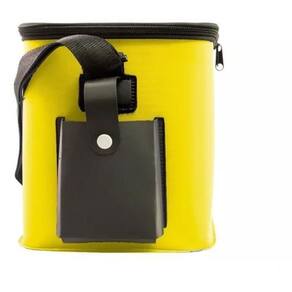 Ideal para o pescador que precisa manter suas iscas vivas e frescas, possui isolamento térmico, tampa de acesso rápido e porta oxigenador com entrada própria para a mangueira de ar. Rede interna no formato do compartimento servindo como peneira para retirar as iscas com facilidade, trocar a água e também não deixando os camarões grudarem. Cinta a tira colo ajustável.