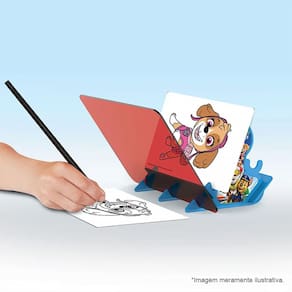 Um kit completo para te ensinar a desenhar, vem com peças plásticas para montar a base, lápis e papel. Você encaixa a cartela ou celular com a imagem de Moana e pelo reflexo desenha no papel.