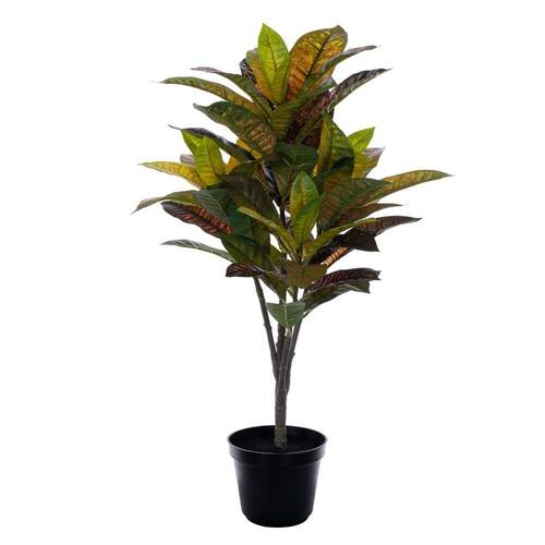 Esta planta artificial Vickerman tem 24 polegadas de altura, com folhagem medindo 13 polegadas de largura. Suas folhas apresentam tons verdes variados e residem em um vaso de plástico preto.
