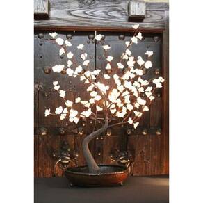 Luzes florais da Hi-Line Gift Ltd Árvore de bonsai branca iluminada com 128 lâmpadas, 30 polegadas