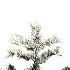 Árvore de Natal de pinho flocado do Alasca artificial Vickerman de 4,5 pés x 44 polegadas - 300 miniluminárias italianas multicoloridas Dura-Lit® - 349 pontas de PVC - Conectividade instantânea - Não mexa com vários plugues. Sente as seções juntas, conecte e ligue!