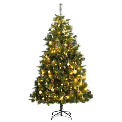 Vem com lindas decorações natalinas, esta árvore de Natal com dobradiças artificiais com LEDs chamará a atenção à noite e criará a atmosfera certa para este Natal.